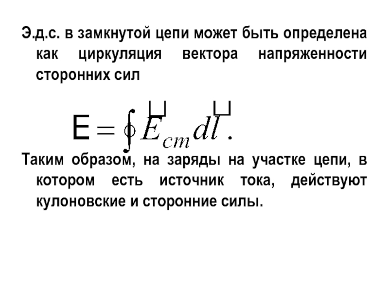 Слайд 12Э.д.с. в замкнутой цепи может быть определена как циркуляция вектора