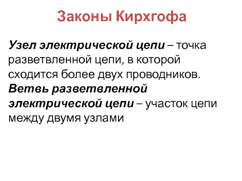 Слайд 35Узел электрической цепи – точка разветвленной цепи, в которой сходится