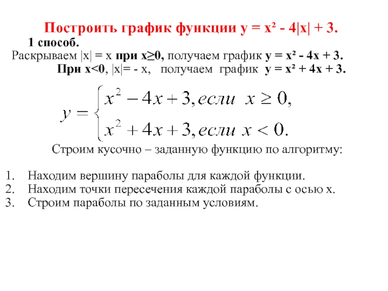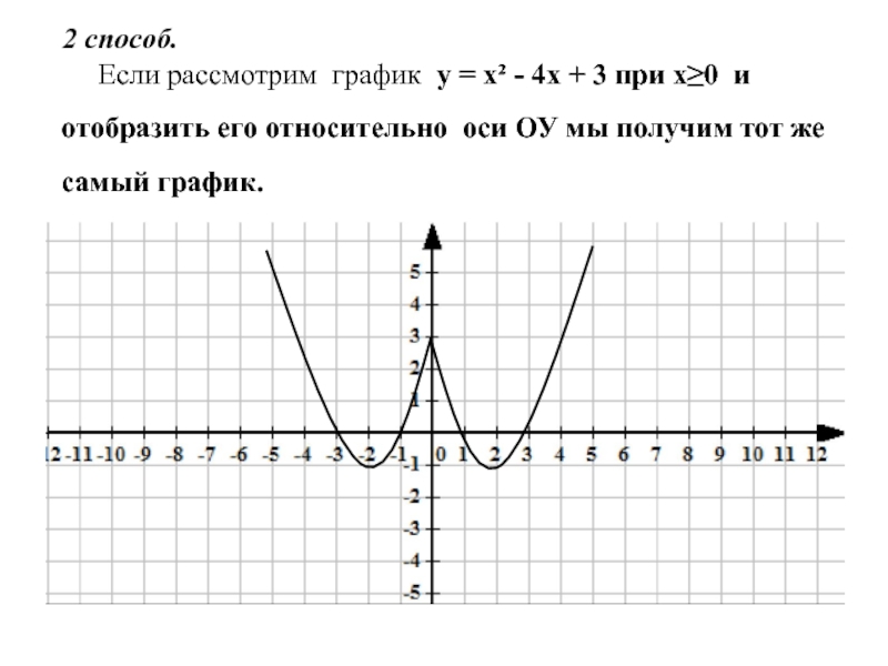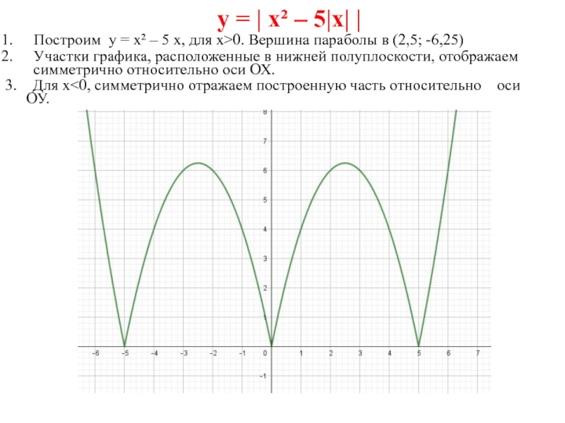 2.Построить для х<0 часть графика, симметричную построенной относительно оси ОУ.
