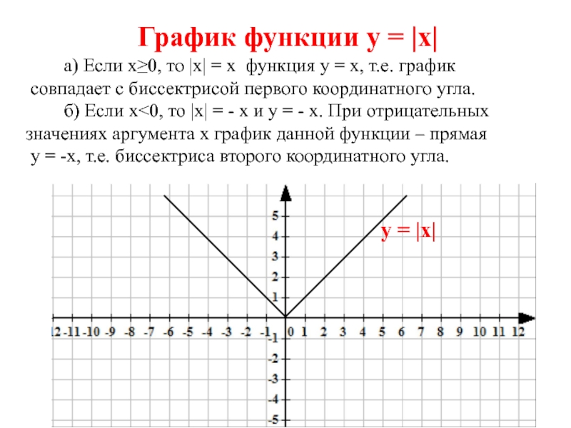 б) Если х<0, то |х| = - х и у = - х. При отрицательных