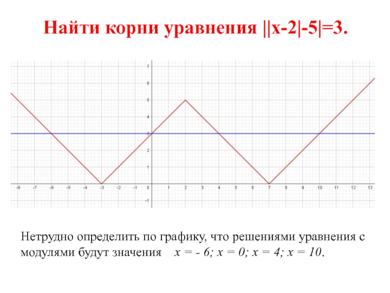 Слайд 20Найти корни уравнения ||x-2|-5| = 3.