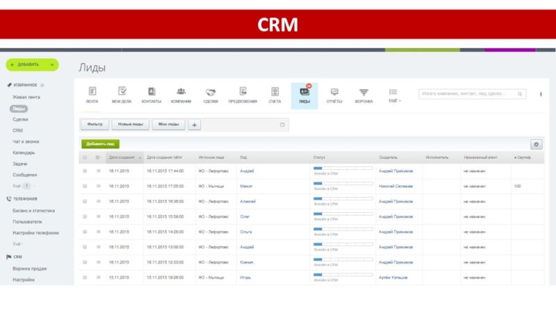 Внесён в CRM – появляется после создания Лида