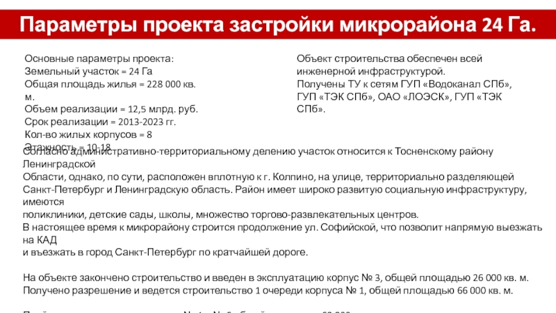 Слайд 141Бизнес-план реализации коттеджного поселка площадью 6 Га, расположенного по адресу:
