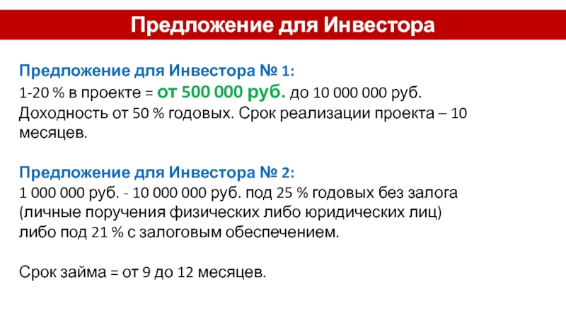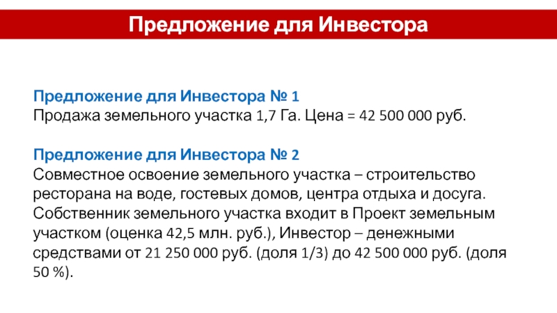 Предложение для Инвестора № 1