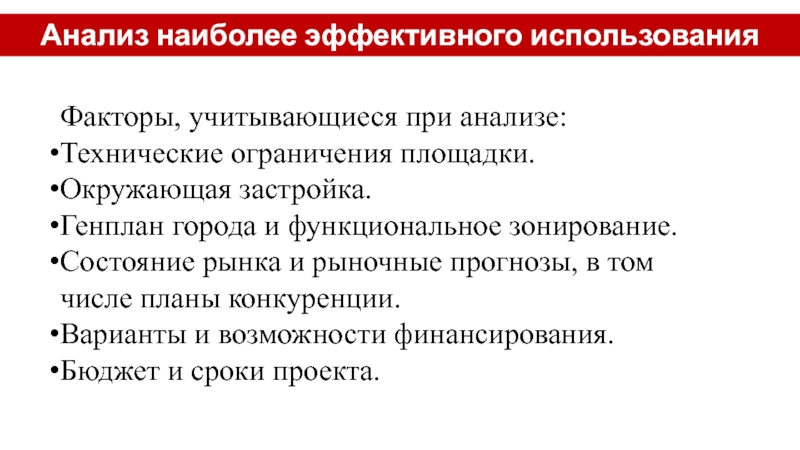 и стоимости объектов (рассмотрение реализованных проектов).