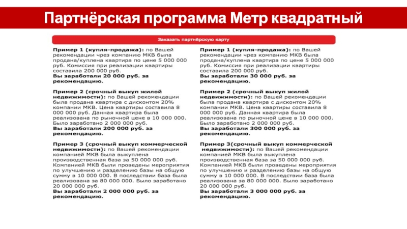 Слайд 136Партнёрская программа Метр квадратный