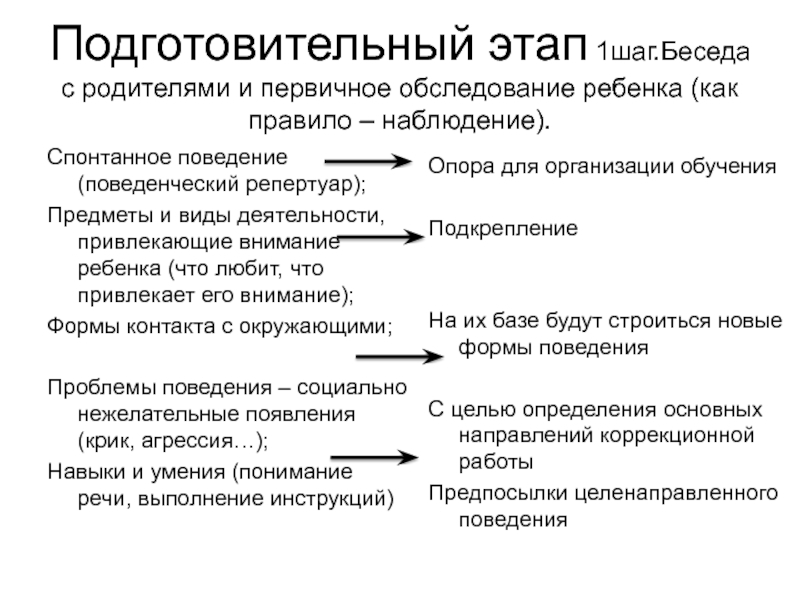 Слайд 14Подготовительный этап 1шаг.Беседа с родителями и первичное обследование ребенка (как