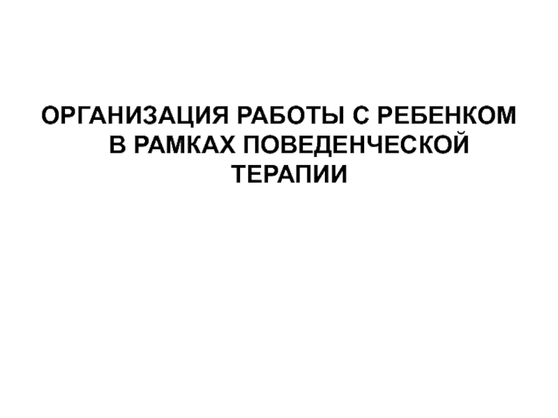 Слайд 13ОРГАНИЗАЦИЯ РАБОТЫ С РЕБЕНКОМ В РАМКАХ ПОВЕДЕНЧЕСКОЙ ТЕРАПИИ
