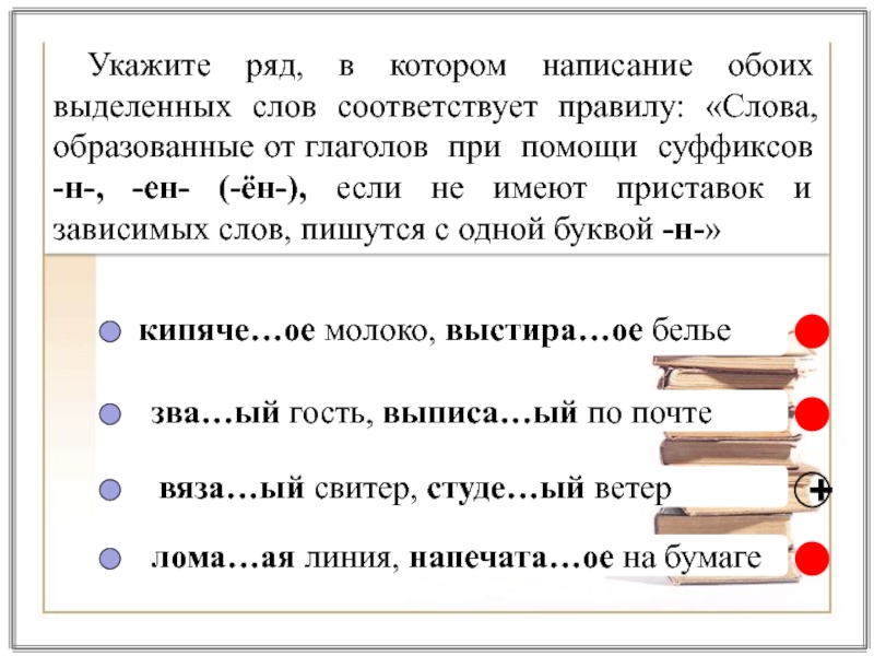 Укажите предложение, в котором написание -н- в выделенном слове соответствует правилу: «Если отглагольное прилагательное не имеет приставки или пояснительное слово, то оно пишется с одной буквой -н-»