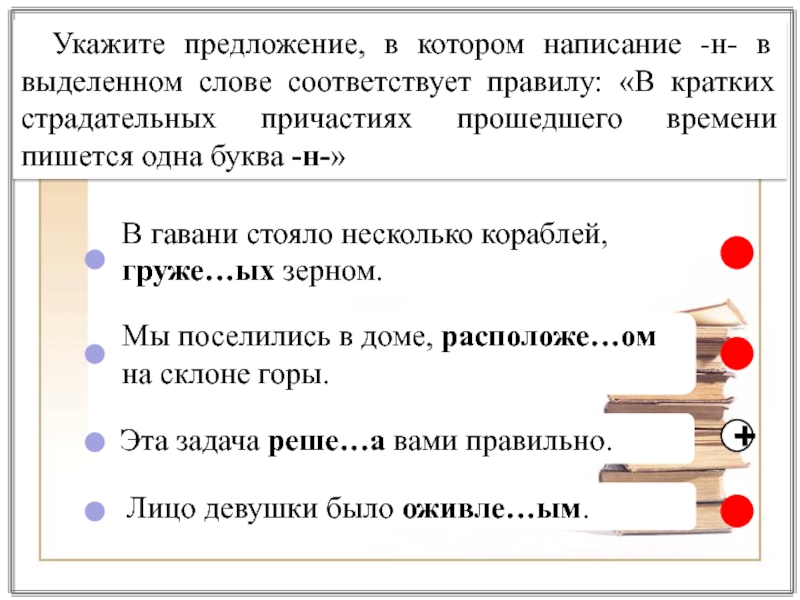 Укажите предложение, в котором написание -н- в выделенном слове соответствует правилу: «В кратких страдательных причастиях прошедшего времени пишется одна буква -н-»
