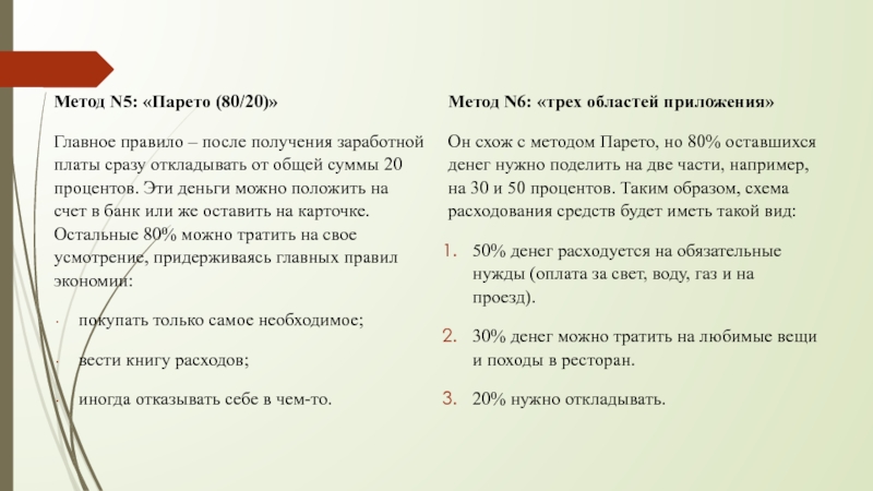 Он схож с методом Парето, но 80% оставшихся денег нужно поделить на две части, например, на 30 и 50 процентов. Таким образом, схема расходования средств будет иметь такой вид: