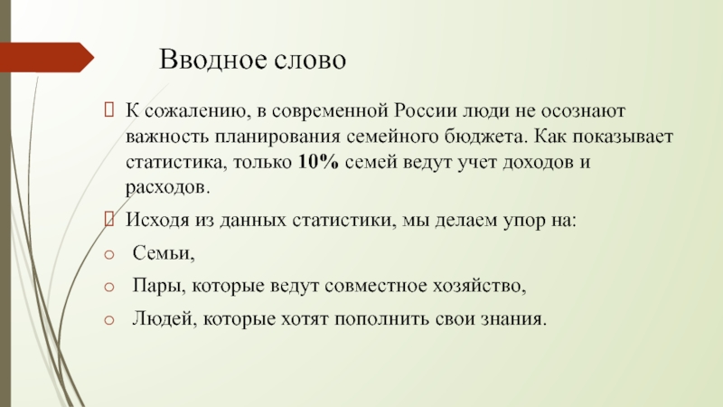 50% денег расходуется на обязательные нужды (оплата за свет, воду, газ и на проезд).