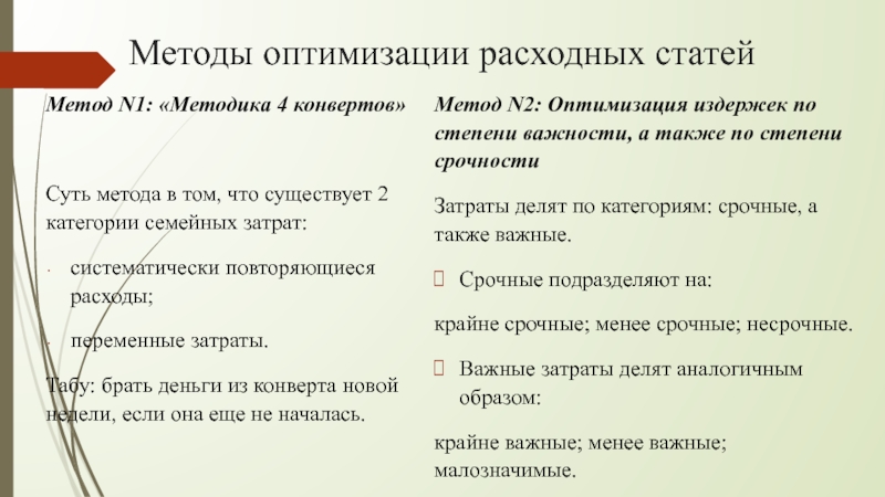 Метод N2: Оптимизация издержек по степени важности, а также по степени срочности