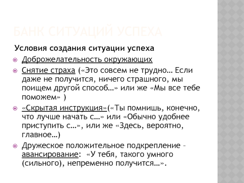 Дружеское положительное подкрепление – авансирование: «У тебя, такого умного (сильного), непременно получится…».