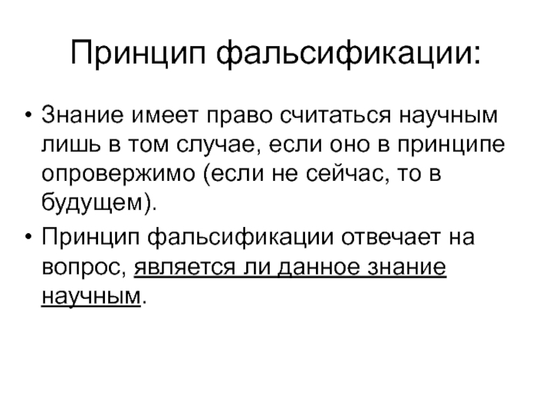 Слайд 26Принцип фальсификации: