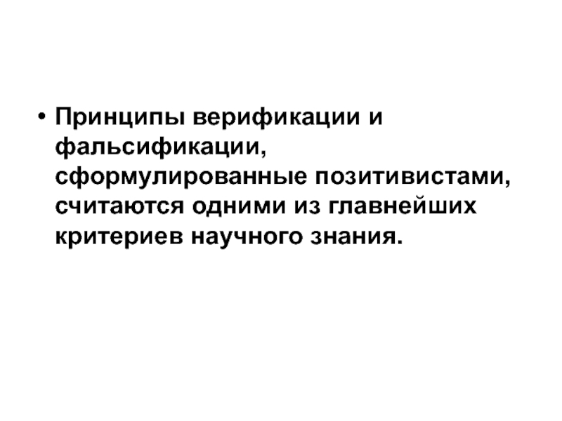 Слайд 3Принципы верификации и фальсификации, сформулированные позитивистами, считаются одними из главнейших