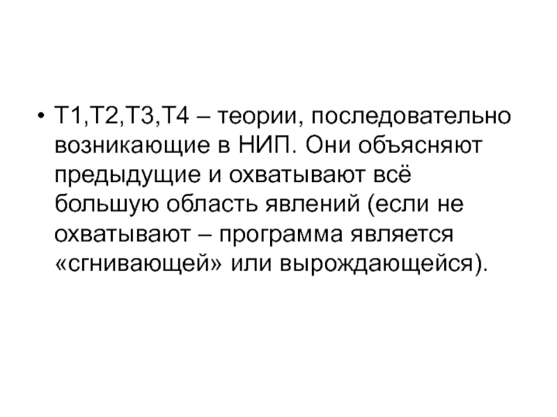 Слайд 37Т1,Т2,Т3,Т4 – теории, последовательно возникающие в НИП. Они объясняют предыдущие