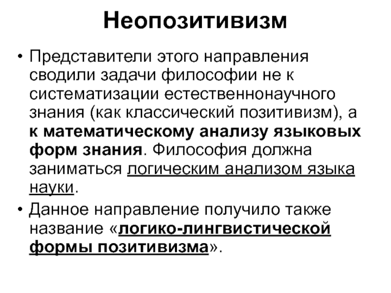 Данное направление получило также название «логико-лингвистической формы позитивизма».