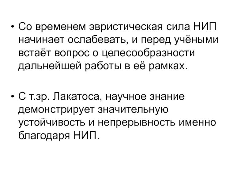 Слайд 38Со временем эвристическая сила НИП начинает ослабевать, и перед учёными