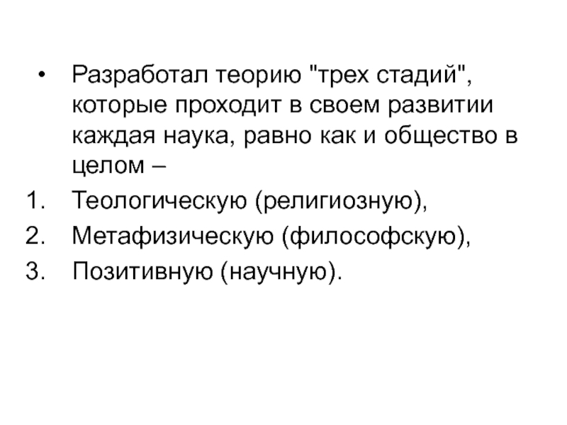 Слайд 8Разработал теорию "трех стадий", которые проходит в своем развитии каждая