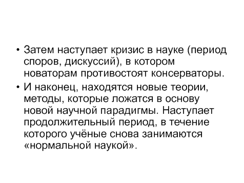 Слайд 31Затем наступает кризис в науке (период споров, дискуссий), в котором