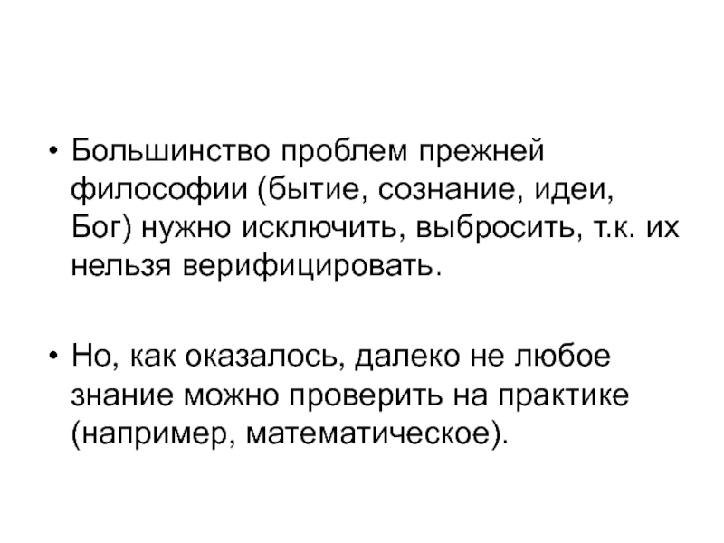 Слайд 22Большинство проблем прежней философии (бытие, сознание, идеи, Бог) нужно исключить,