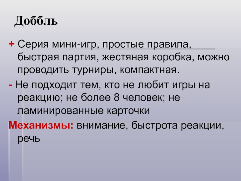 любит игры на реакцию; не более 8 человек; не ламинированные карточки