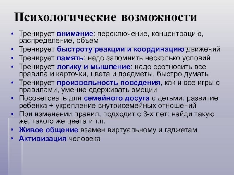 Тренирует внимание: переключение, концентрацию, распределение, объем
