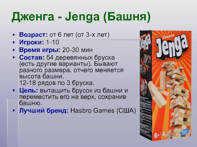 названиями (Hasbro, Сквирл, Бэмби, Thai wood, Задира, Нескучные игры, Tactic;