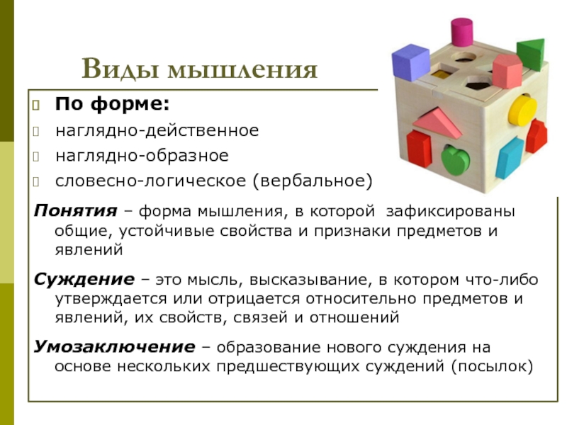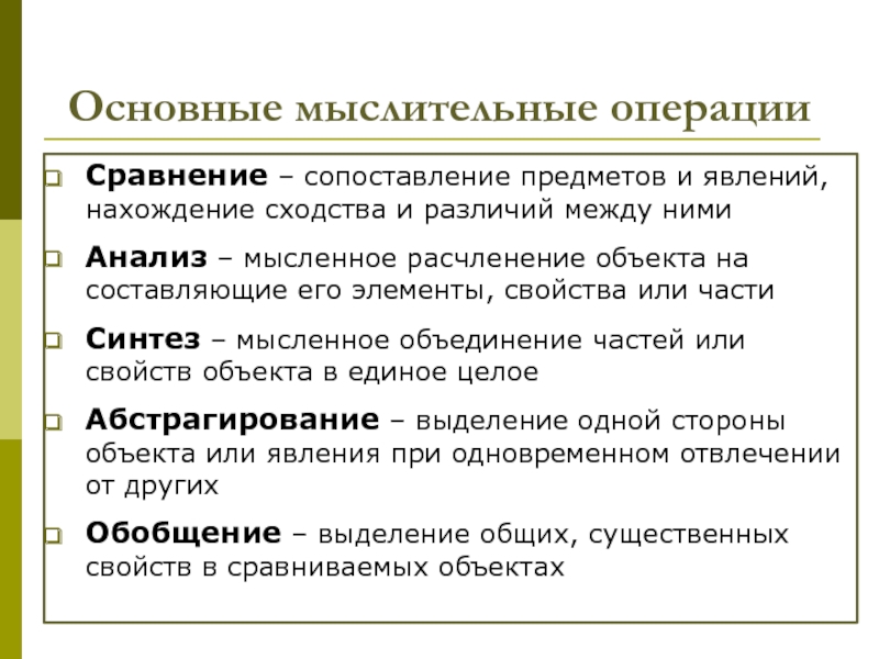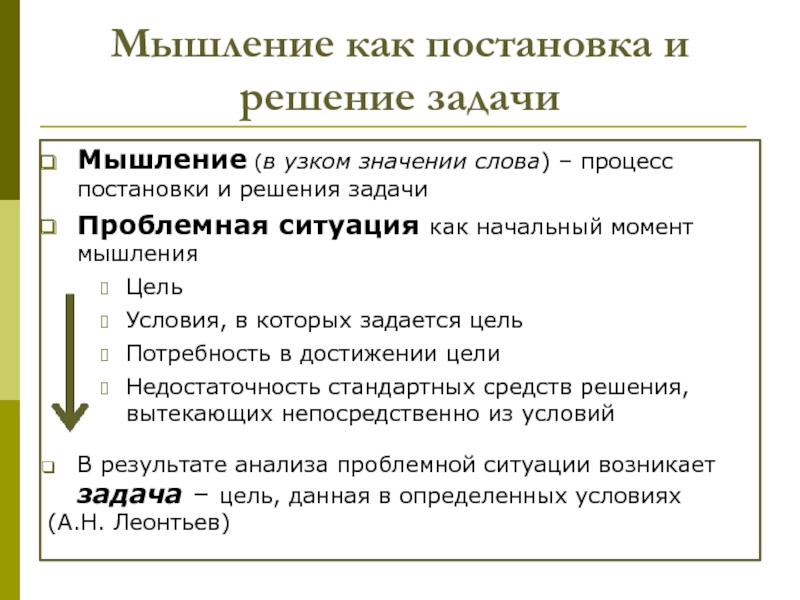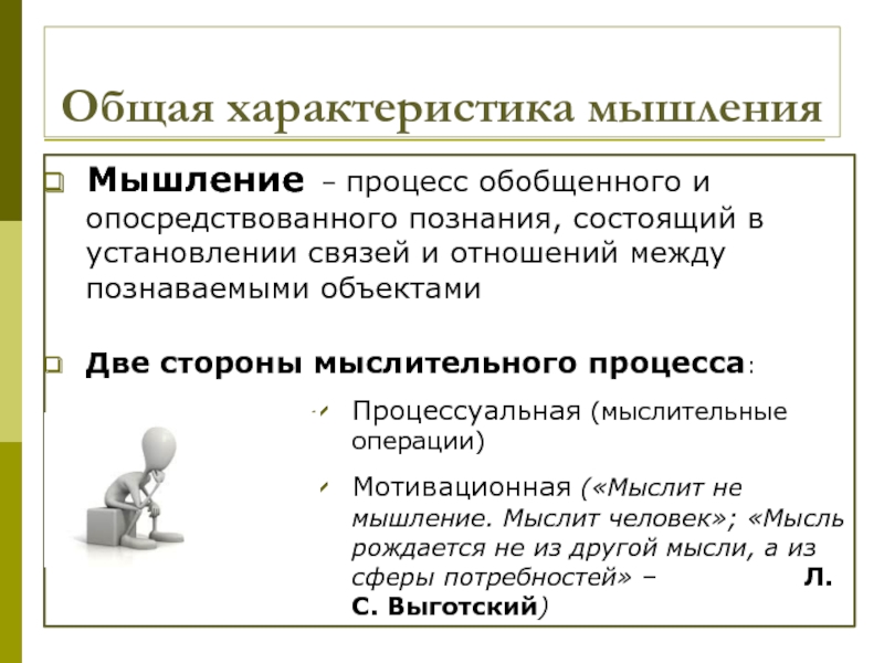 Мышление – процесс обобщенного и опосредствованного познания, состоящий