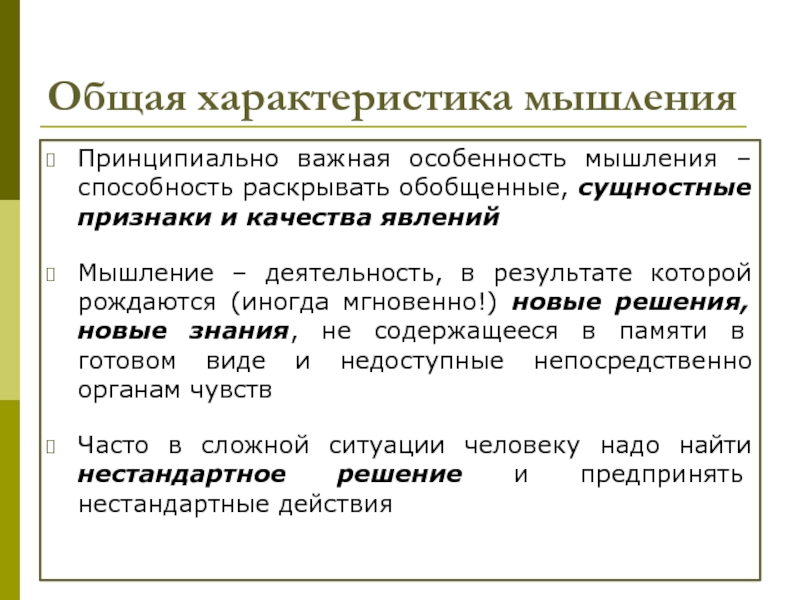 Принципиально важная особенность мышления – способность раскрывать обобщенные,