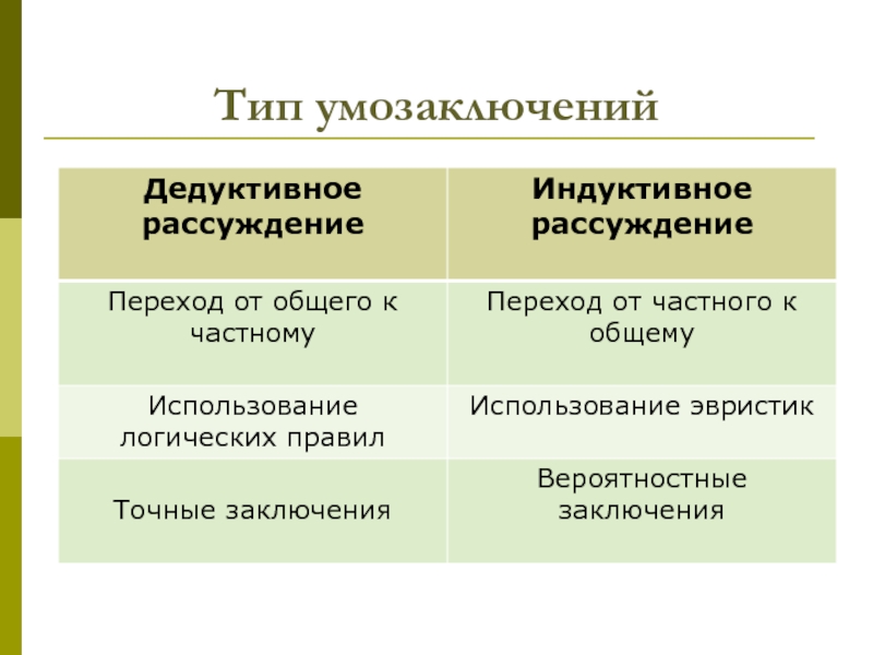 Обобщение – выделение общих, существенных свойств в сравниваемых объектах