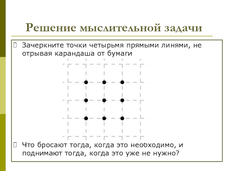 Зачеркните точки четырьмя прямыми линями, не отрывая карандаша