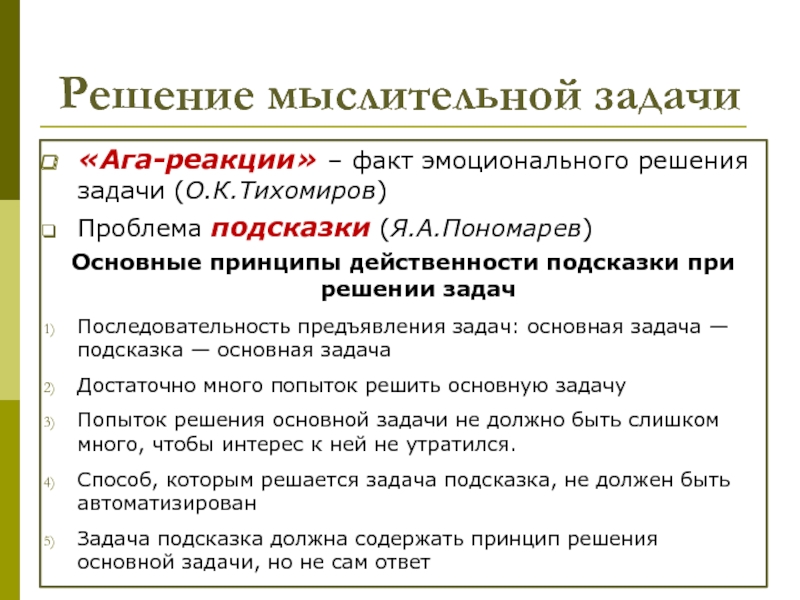 «Ага-реакции» – факт эмоционального решения задачи (О.К.Тихомиров)