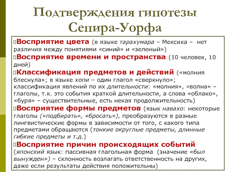 Слайд 54Подтверждения гипотезы Сепира-Уорфа