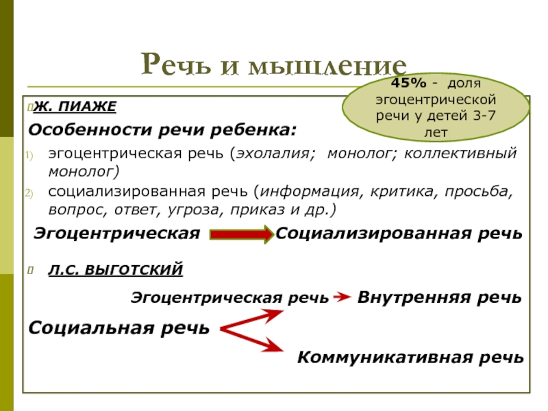 45% - доля эгоцентрической речи у детей 3-7 лет