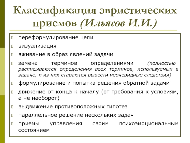 Слайд 9Классификация эвристических приемов (Ильясов И.И.)