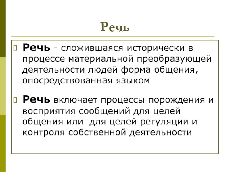 Речь - сложившаяся исторически в процессе материальной преобразующей деятельности людей