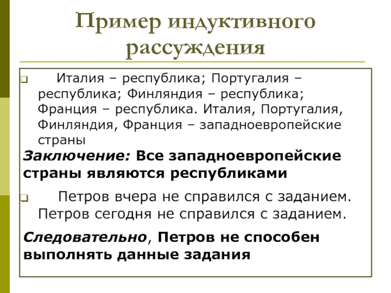 Абстрагирование – выделение одной стороны объекта или явления при одновременном отвлечении от других