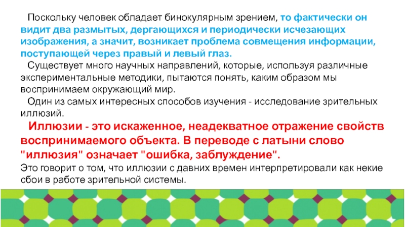 А на второй картинке нам кажется, что желтые и синие фигурки пытаются обогнать друг друга, но на самом деле они движутся с одной скоростью
