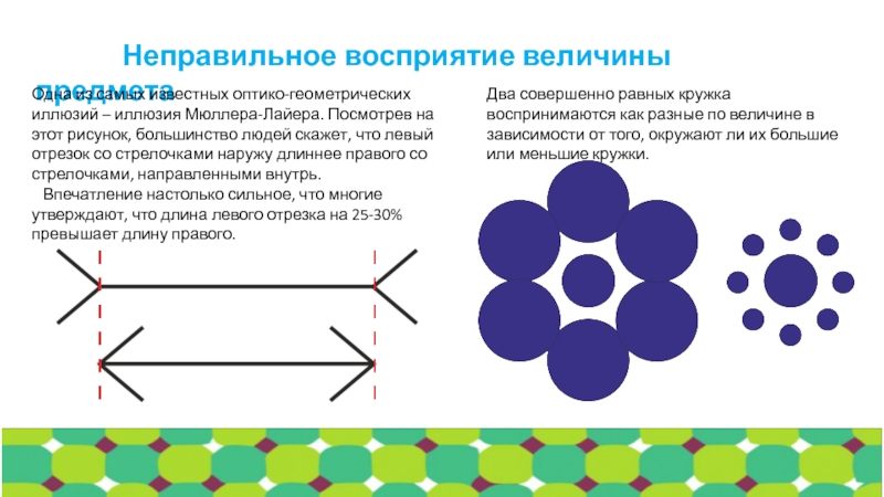 Два совершенно равных кружка воспринимаются как разные по величине в зависимости от того, окружают ли их большие или меньшие кружки.