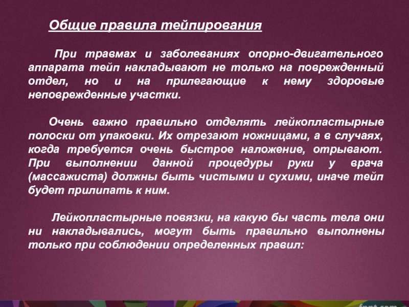 Слайд 7Общие правила тейпирования