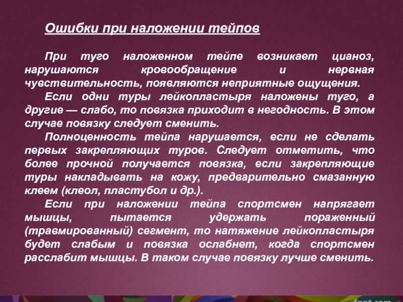 Слайд 11Ошибки при наложении тейпов