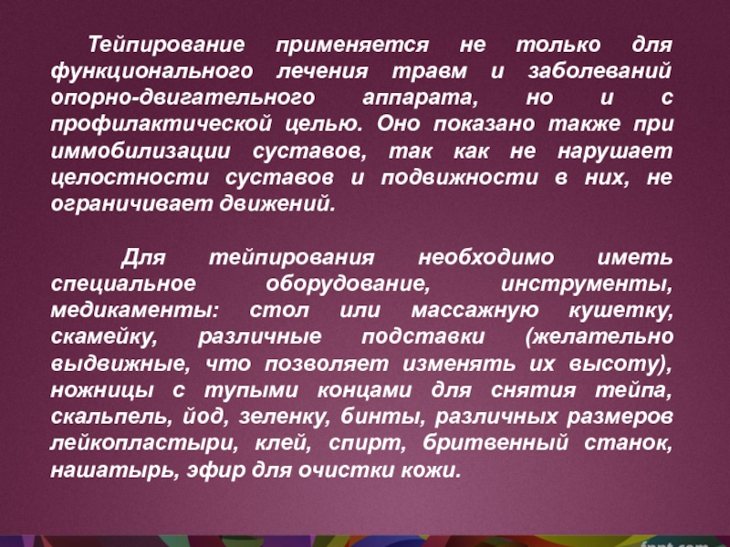 Слайд 6Тейпирование применяется не только для функционального лечения травм и заболеваний