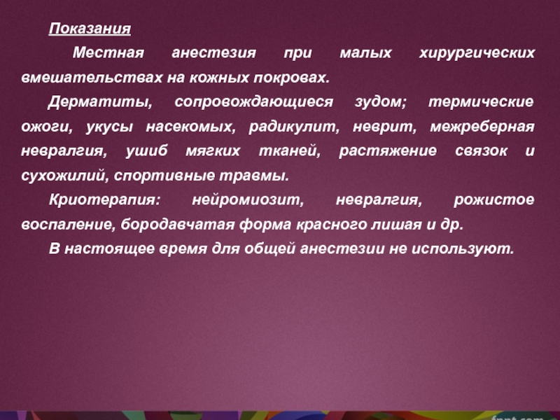 Дерматиты, сопровождающиеся зудом; термические ожоги, укусы насекомых, радикулит, неврит, межреберная