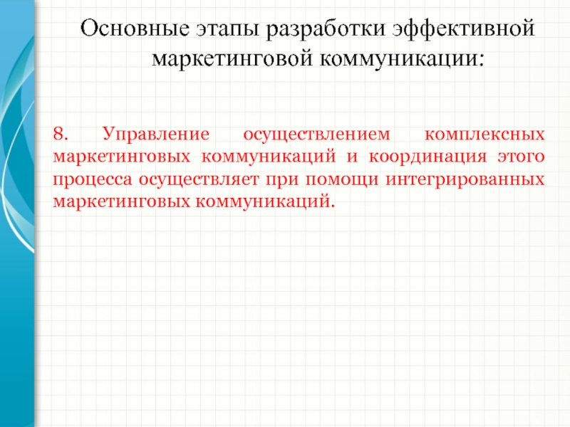 Слайд 8Основные этапы разработки эффективной маркетинговой коммуникации: