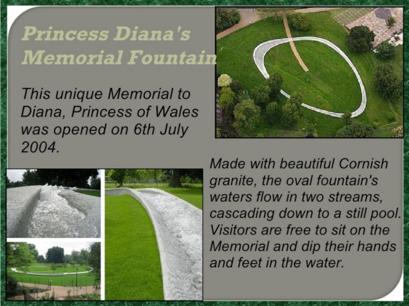 over 4,000 trees, a large lake, a meadow and ornamental flower gardens, there’s a good chance you’ll forget you are right in the centre of London.Hyde Park in London has something for everyone. You can enjoy swimming, boating, cycling and skating. There are pitches for team games, tennis courts, tracks for horse riding and a spectacular children’s playground.