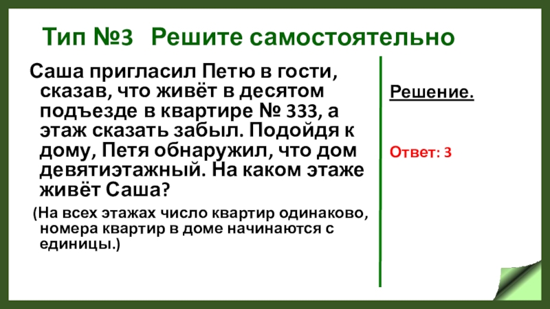 Подойдя к дому, Петя обнаружил, что дом семиэтажный. На каком этаже живёт Саша? (На всех этажах число квартир одинаково, номера квартир в доме начинаются с единицы.)