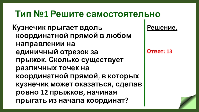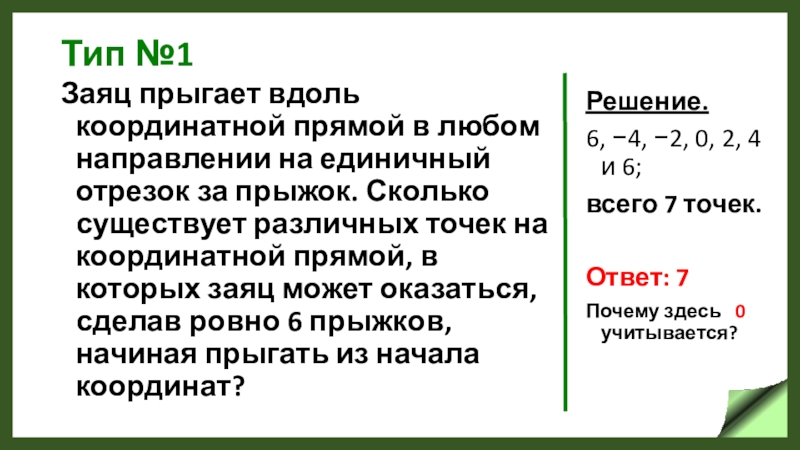 направлении на единичный отрезок за прыжок. Сколько существует различных точек на координатной прямой, в которых