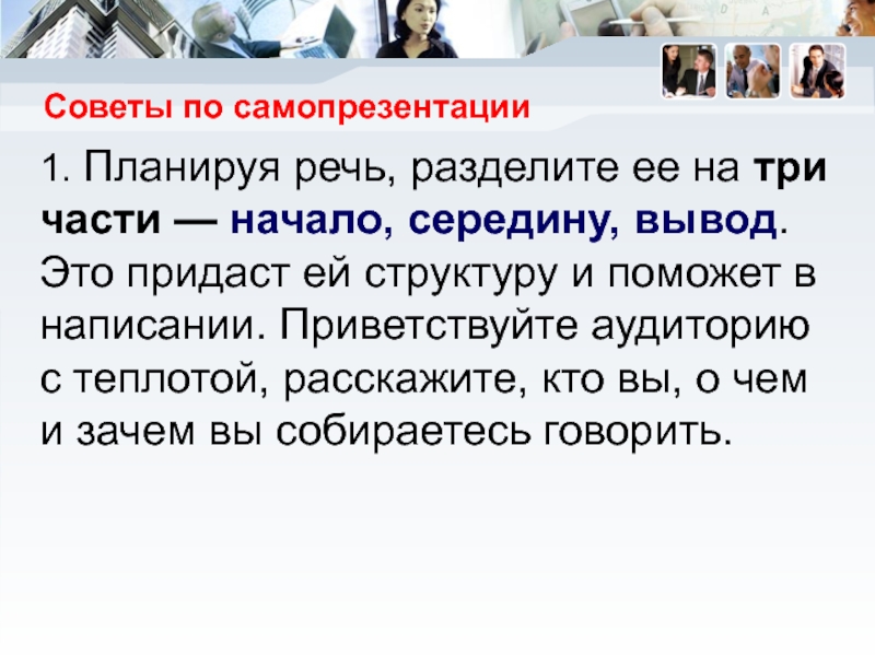 Для тех, кто пробует себя презентовать впервые, нужен план.